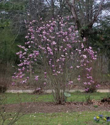 The Saucer Magnolia is a deciduous tree. Has a vigorous growth rate. The mature height is approximately 20' high by 20' spread The flowers are large, deep rose/red/purple with whitish interior cover the entire tree in spring. Displaying a stunning bouquet of flowers throughout the tree. The trees shape is upright when young, spreading when older. This tree is available in single trunk like the picture above, or in multi trunk like the picture below.